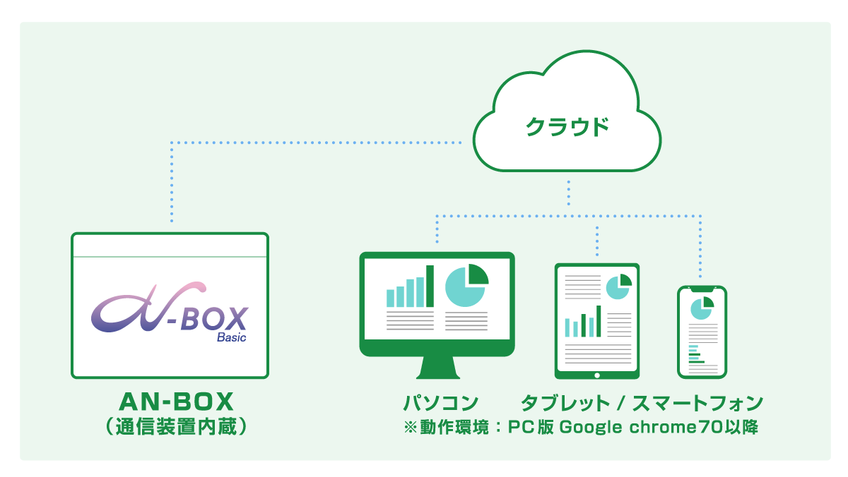 自宅や外出先からスマートフォンやパソコンでハウス環境をモニタリング。