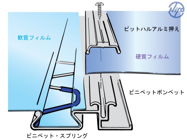 硬質フィルムと軟質フィルムの張り分け、結露水も排水可能!