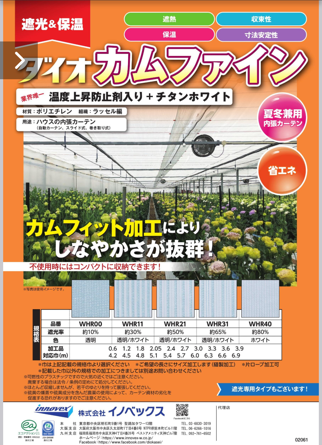 カムファインミラーは、遮光・保温兼用タイプ3種をラインナップ 作物・使用現場に合わせて選択いただけます。