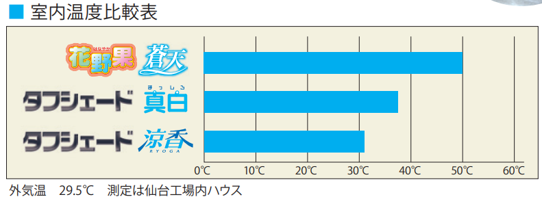 ・ハウス内で硫黄燻蒸及び硫黄散布を頻繁に行うとフィルムの劣化を早めますのでご注意ください。