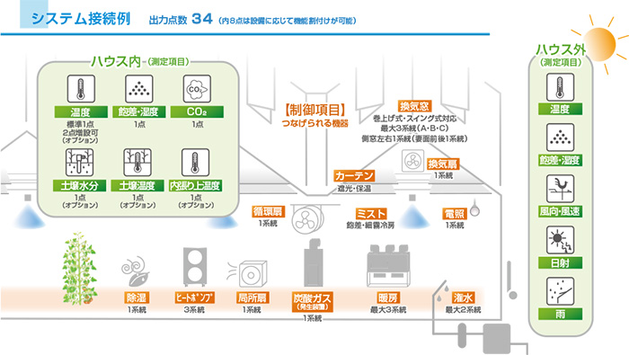 - 離れた場所からハウス内環境をモニタリング&遠隔操作
