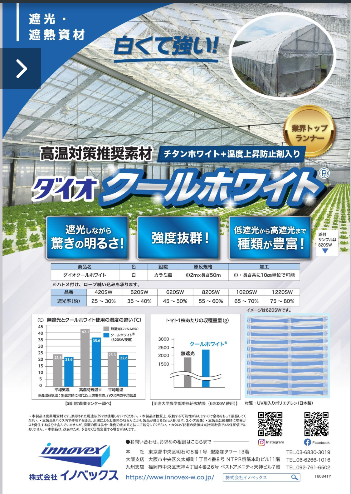 • 白色で温室内の明るさを保ちつつ遮光・遮熱が可能!