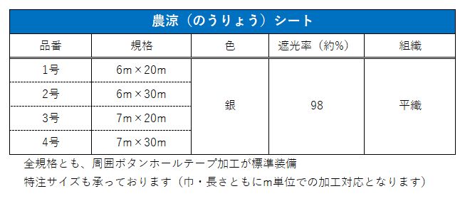 アルミ蒸着フィルムと黒テープで使用現場の遮熱と遮光を同時に実現 ハウス内で作業を行う際の疲労軽減、熱中症予防、日焼け対策に最適なネットです。