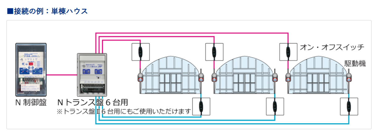 • Nトランス盤と駆動機の間に接続することで、駆動機1台ごとにオン・オフを切り替えられるスイッチです!