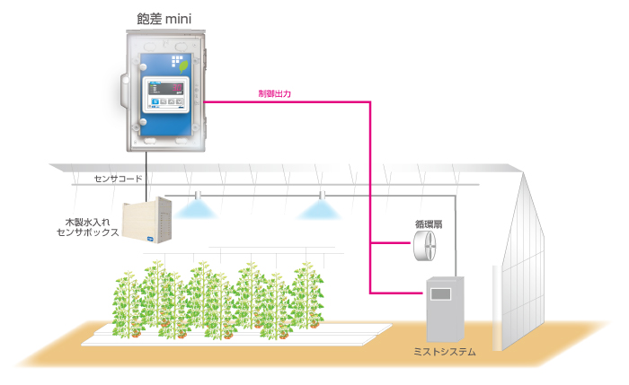 飽差プラスの姉妹品として飽差コントロールの機能に特化。サイズ面、コスト面ともに既設ハウスで飽差管理を始めたい方にも手軽に導入しやすいモデルです。