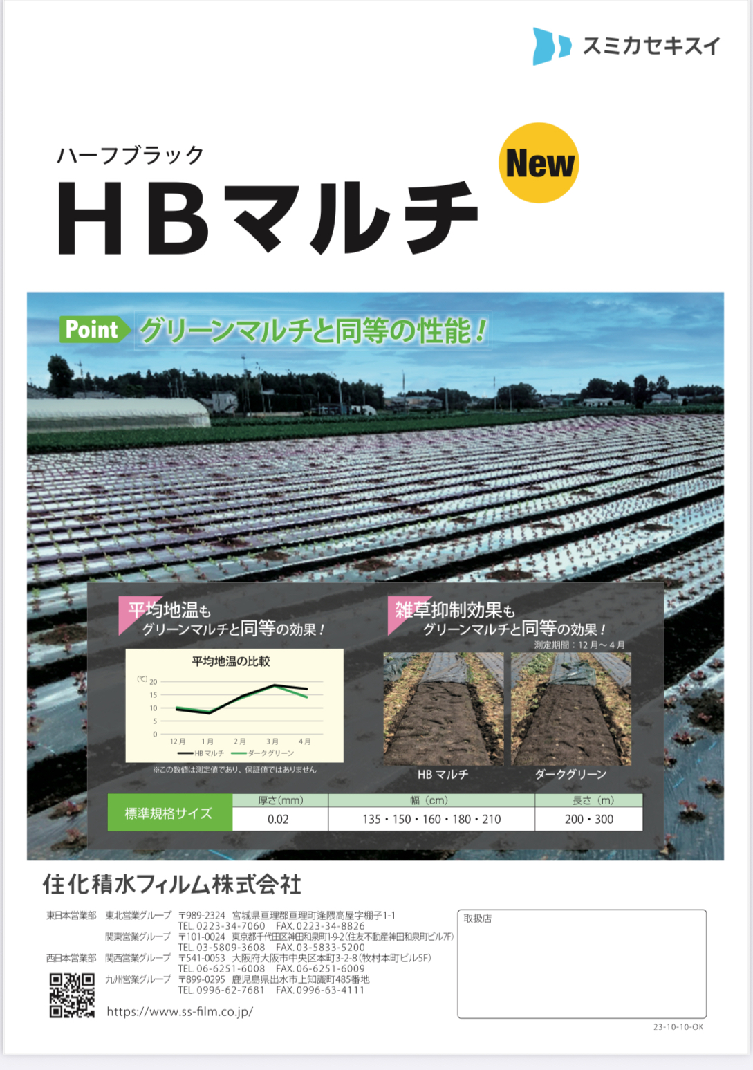 スミカセキスイ HBマルチ(ハーフブラック)を登録しました。 スミカセキスイ HBマルチ(ハーフブラック)を登録しました。 登録ページ: スミカセキスイ HBマルチ(ハーフブラック) 分類カテゴリー: 被覆材(ハウスフィルム、マルチ等) 更新日: 2026年3月8日 よかったらシェアしてね! URLをコピーしました! URLをコピーしました!